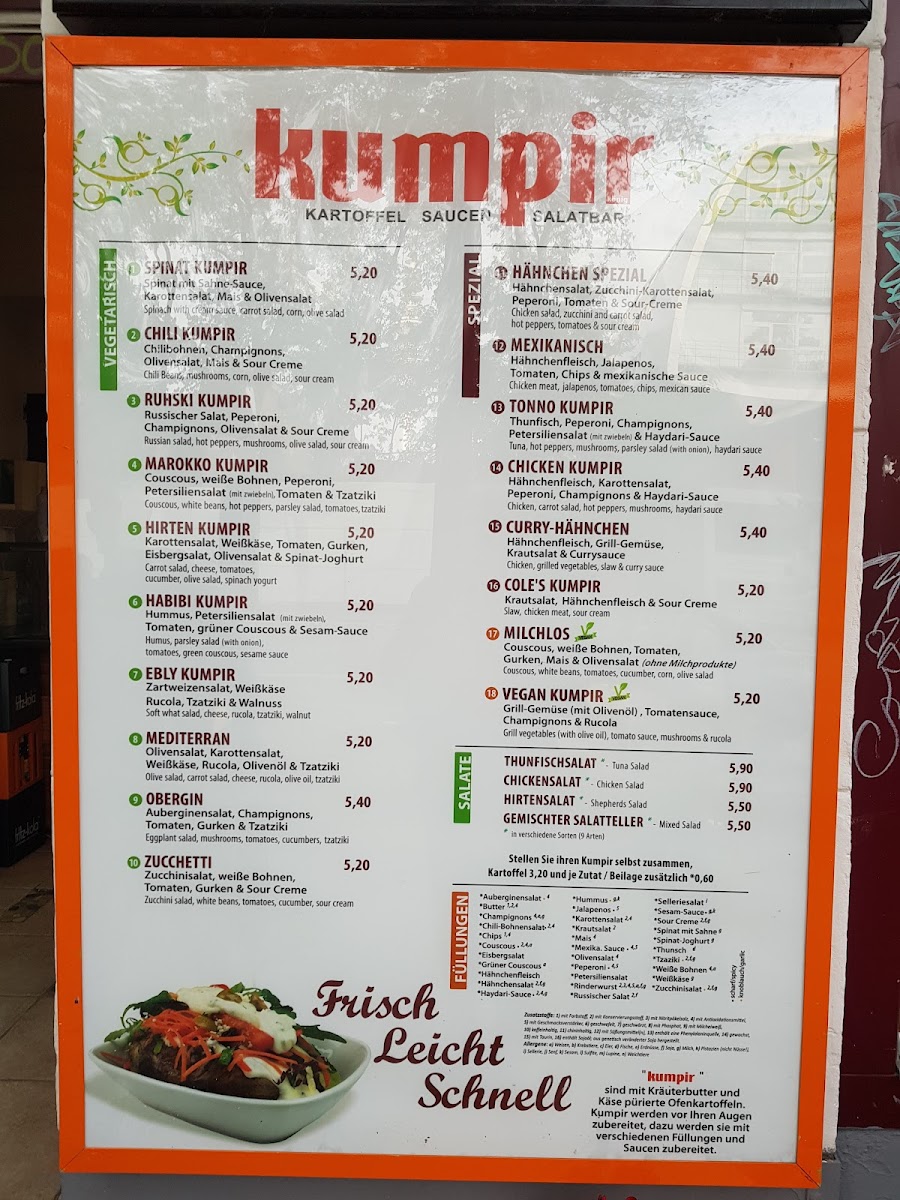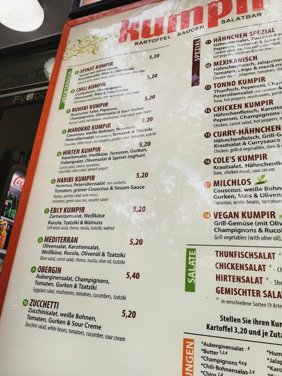 If you're craving something hearty and delicious, the Kumpir König Hamburg Sternschanze Menu offers a delightful array of mouthwatering dishes. Located at Schanzenstraße 95 in Hamburg’s vibrant Sternschanze district, this cozy spot is the perfect place to enjoy a warm, satisfying meal. Their specialty, kumpir, is a delicious baked potato packed with various toppings like cheese, olives, sausages, and fresh veggies. It’s a perfect choice for anyone looking for a customizable and filling meal. Besides kumpir, the menu includes tasty sides and fresh salads to complement your meal, offering something for everyone. Whether you're dining solo or with friends, you'll love the unique flavors and casual atmosphere that makes Kumpir König a local favorite in the area.